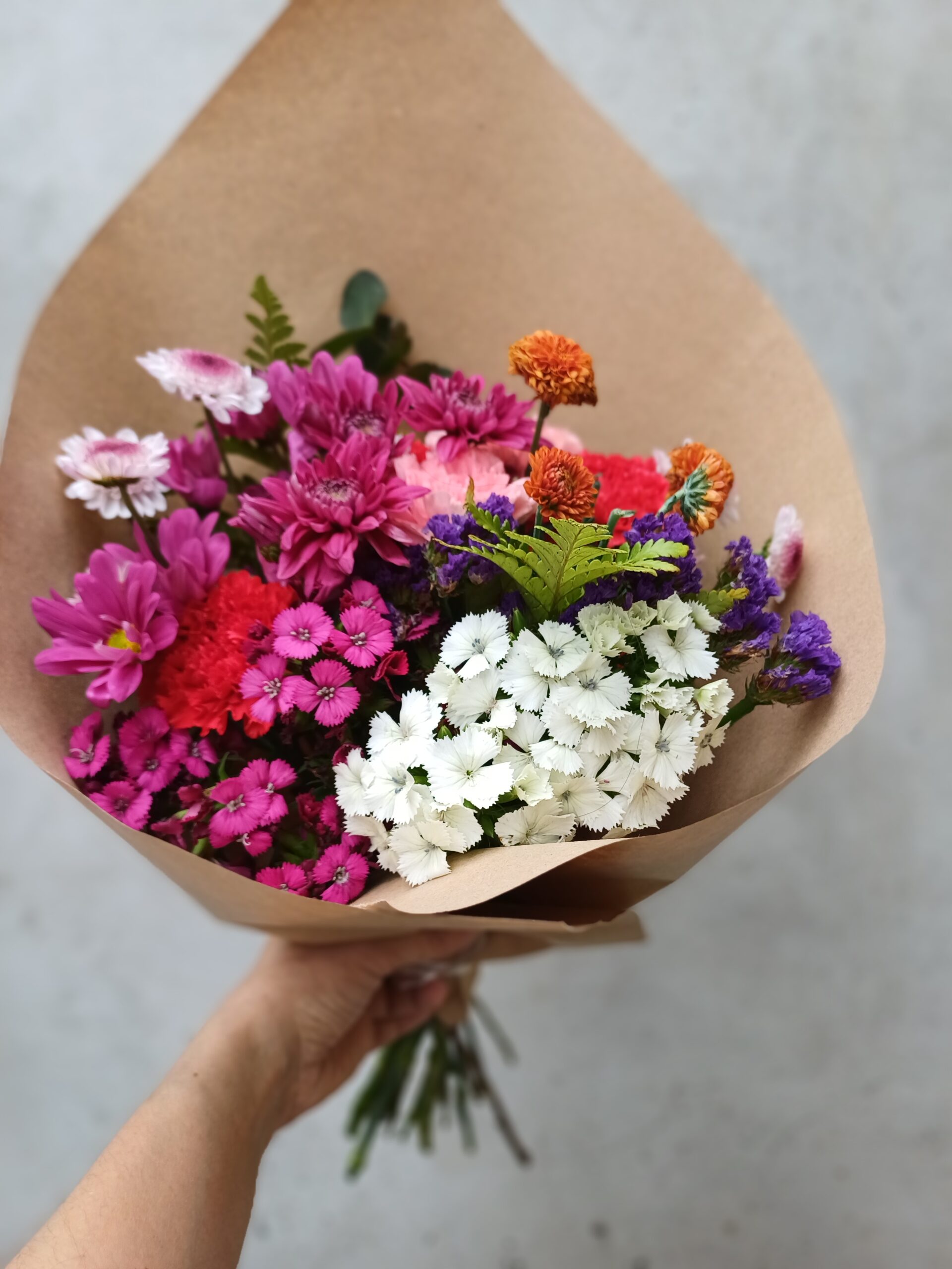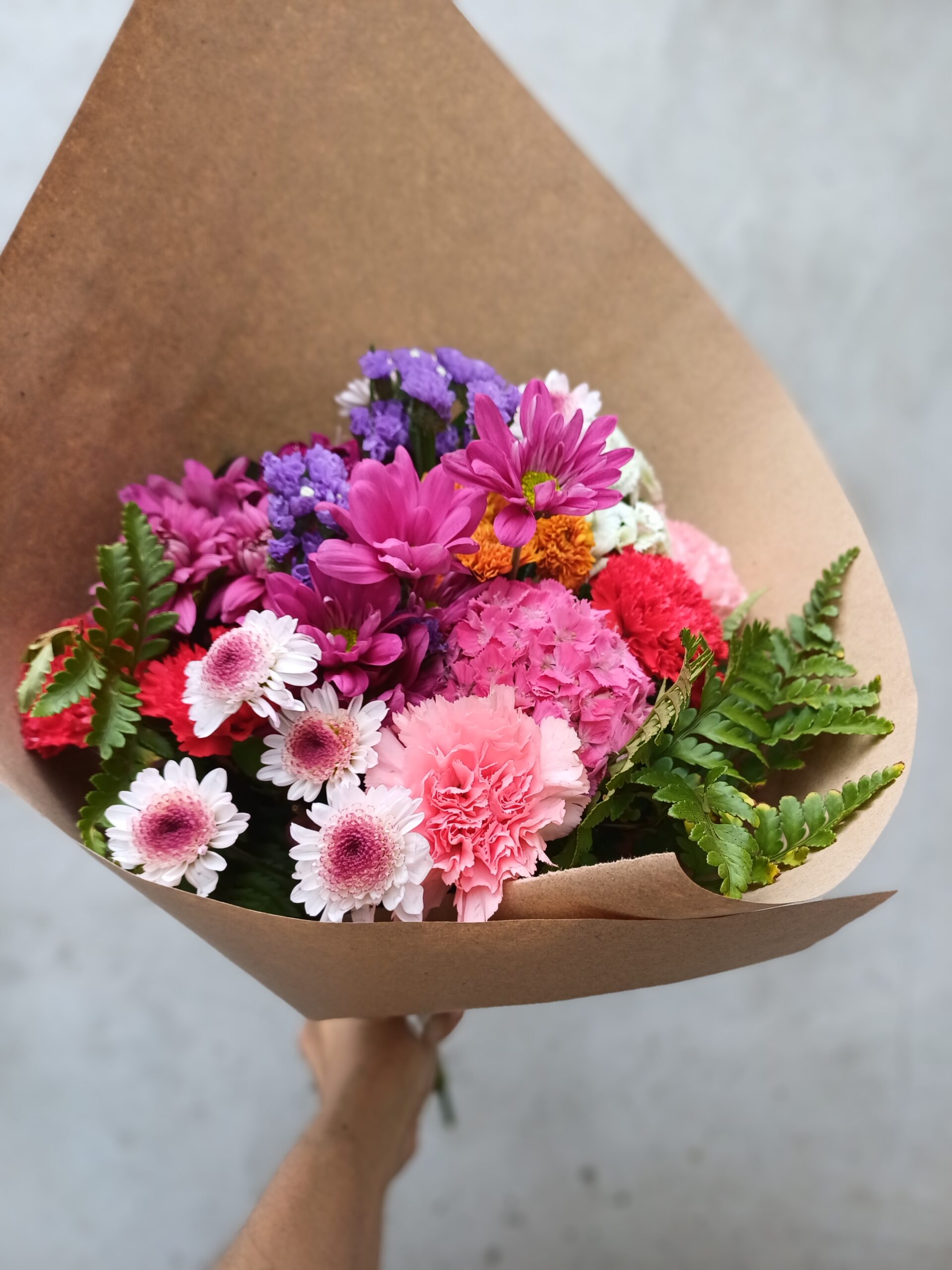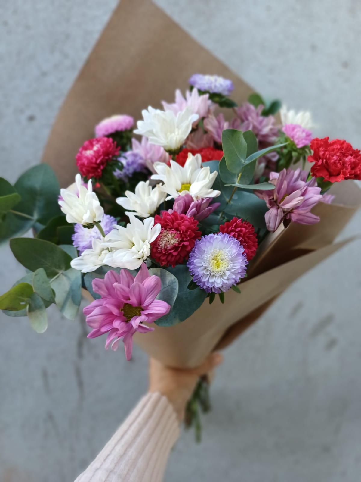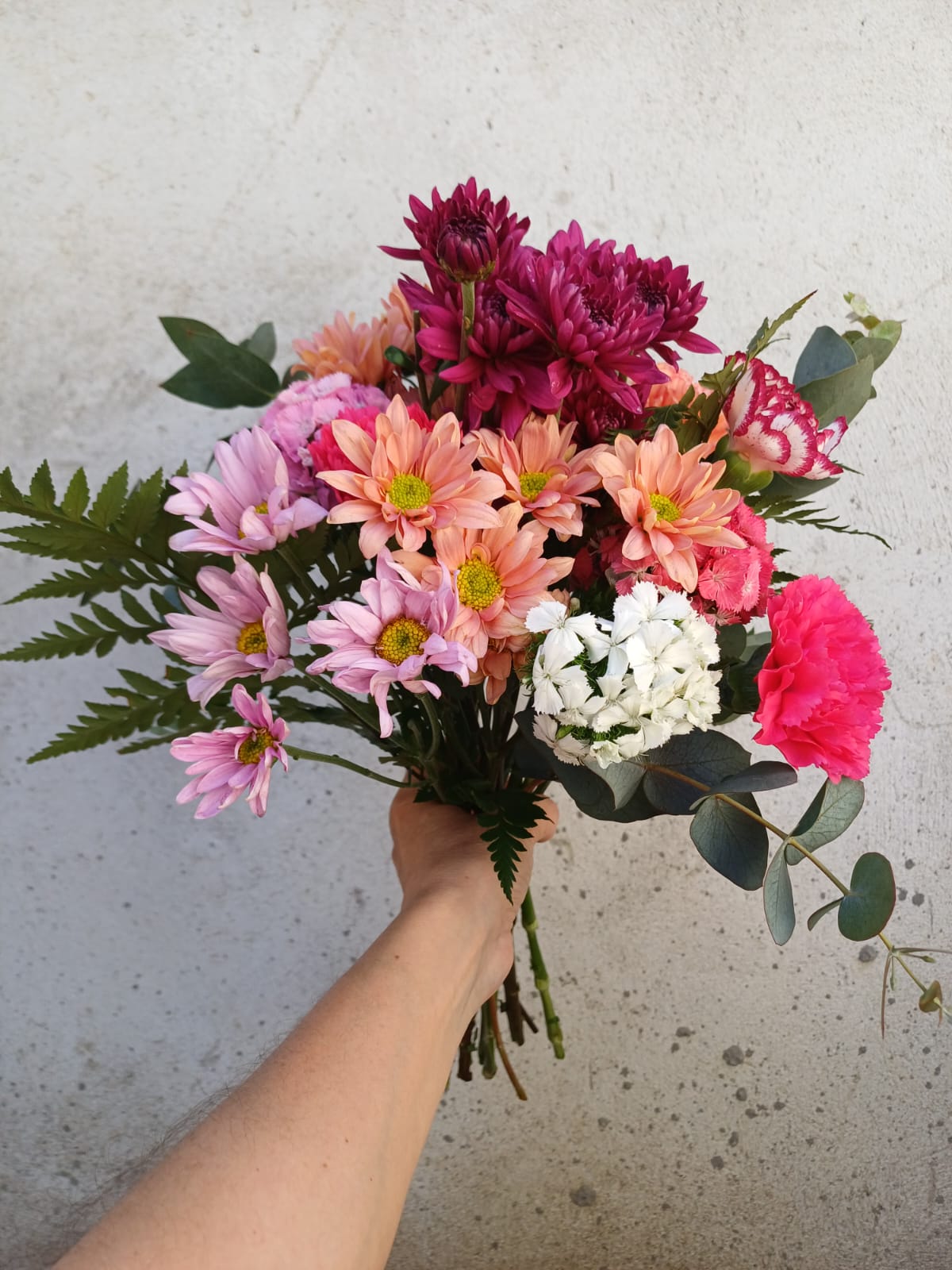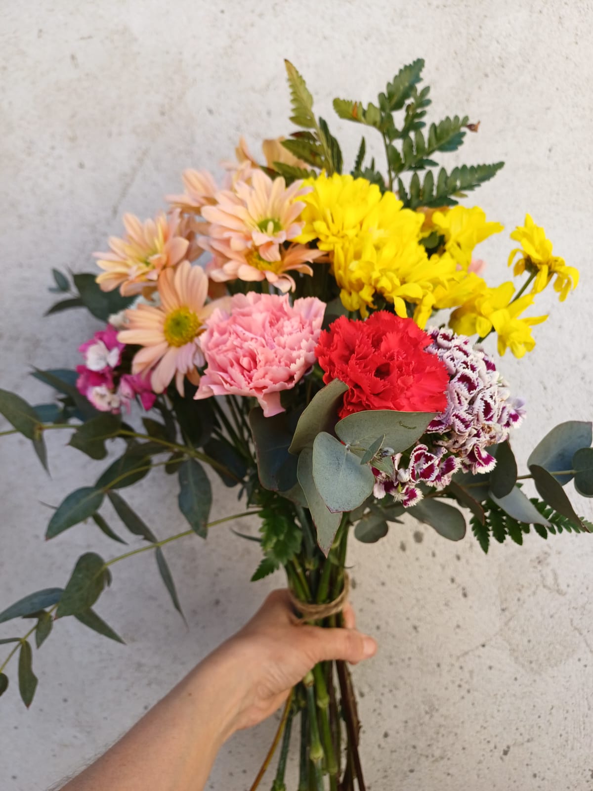 Ramo de san vicentes y flores de estación. Esta flor es muy vérsatil por su variedad de colores, durabilidad y apariencia.